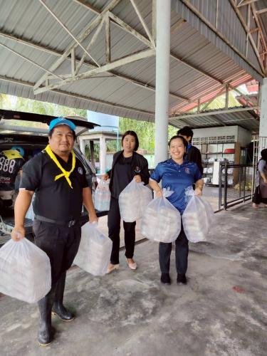 สำนักงานพัฒนาชุมชนอำเภอตากใบ โดยนางสาวณภัสนันทร์ เจริญพันธ์ พัฒนาการอำเภอตากใบ มอบหมายให้ เจ้าหน้าที่พัฒนาชุมชนอำเภอตากใบ นำโดยนายกฤษฎา สุขสบาย นายอำเภอตากใบ/ผู้อำนวยการศูนย์ปฏิบัติการป้องกันและปราบปรามยาเสพติดอำเภอตากใบ พร้อมด้วย หัวหน้าส่วนราชการ ปลัดอำเภอ เจ้าหน้าที่ตำบล ผู้นำท้องที่ ผู้นำท้องถิ่น และส่วนที่เกี่ยวข้อง ร่วมต้อนรับ นายอนิรุทร บัวอ่อน ปลัดจังหวัดนราธิวาส ทพญ.ปิยนาถ บุณฑริก รักษาการแทนนายกเหล่ากาชาดจังหวัดนราธิวาส พร้อมคณะกรรมการเหล่ากาชาดจังหวัดนราธิวาส ส่วนราชการ ระดับจังหวัด ร่วมลงพื้นที่แจกจ่ายอาหารปรุงสุกใหม่ (ข้าวกล่อง) พร้อมน้ำดื่ม จากครัวกาชาดนราธิวาส จำนวน 300 กล่อง และจากมูลนิธิอาสาเพื่อนพึ่ง(ภาฯ) ยามยาก สภากาชาดไทย จำนวน 200 กล่อง ให้กับผู้ประสบอุทกภัย พร้อมมอบถุงยังชีพให้กับกลุ่มเปราะบางในพื้นที่