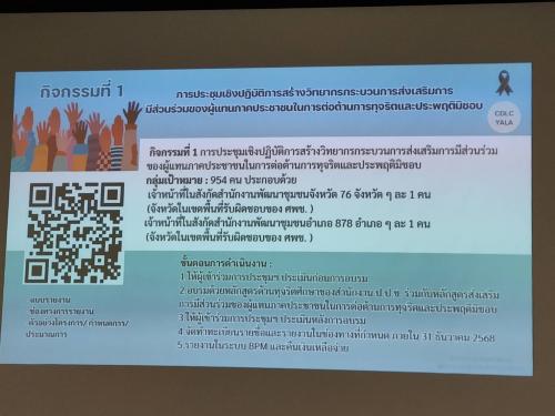 พช.ตากใบ ร่วมประชุมเชิงปฏิบัติการสร้างวิทยากรกระบวนการส่งเสริมการมีส่วนร่วมของผู้แทนภาคประชาชนในการต่อต้านทุจริตและประพฤติมิชอบ